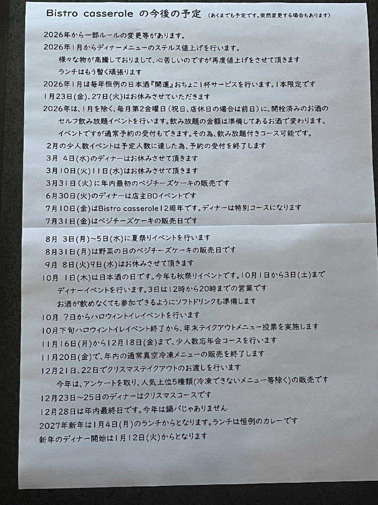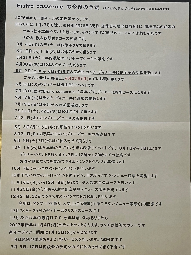 定休日のご予約、お問い合わせのお返事は休み明けとなります。
